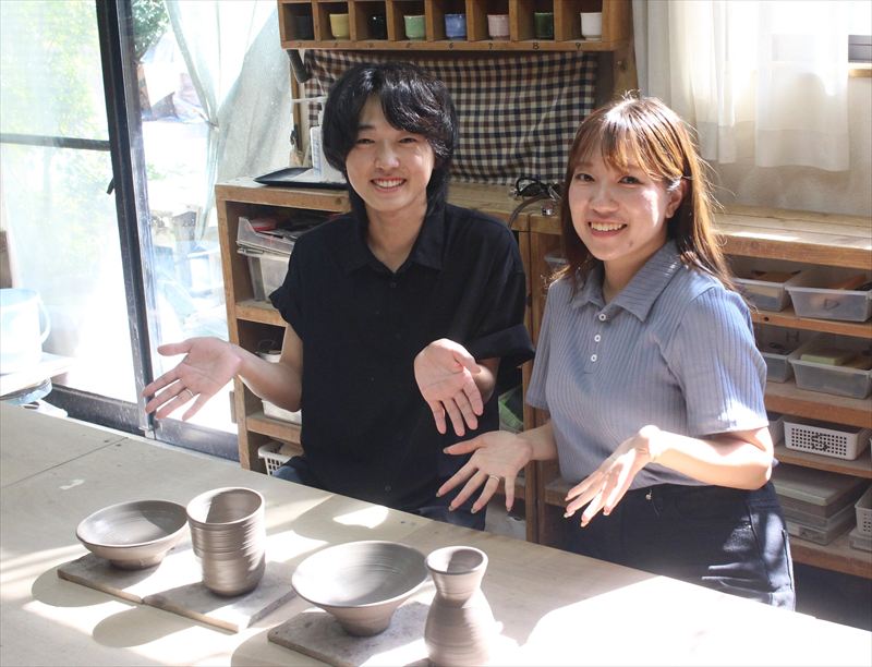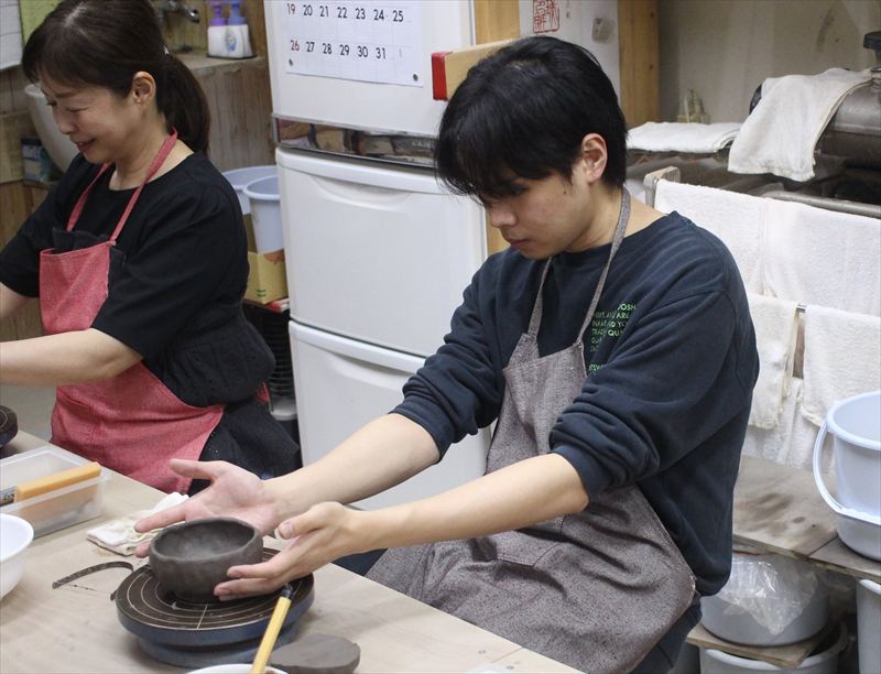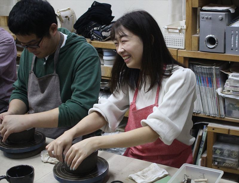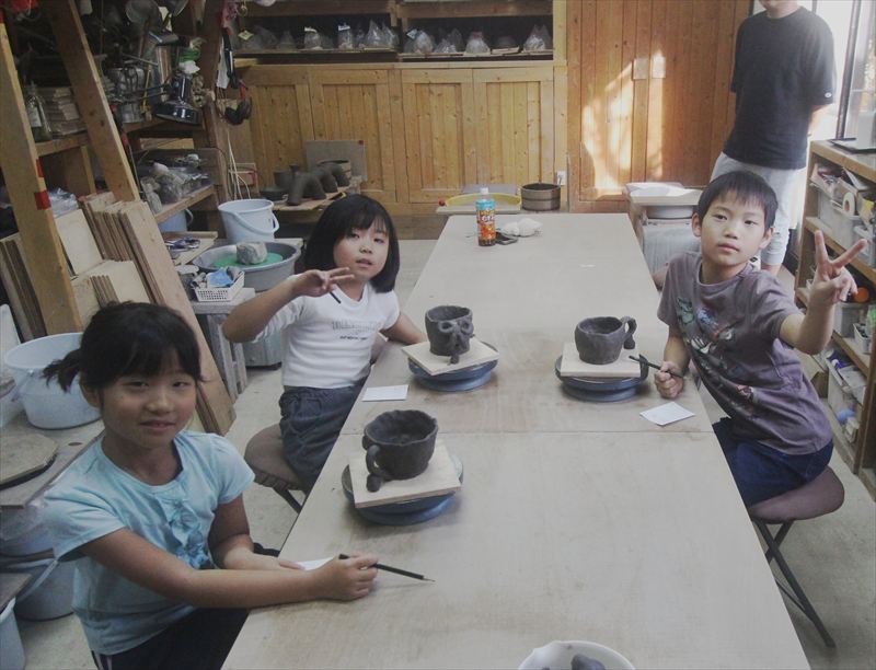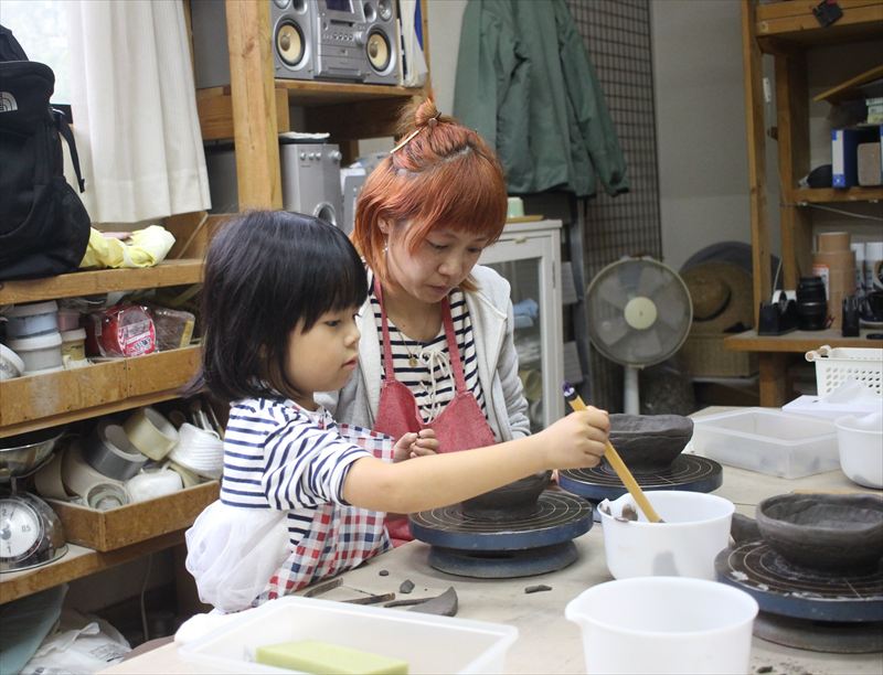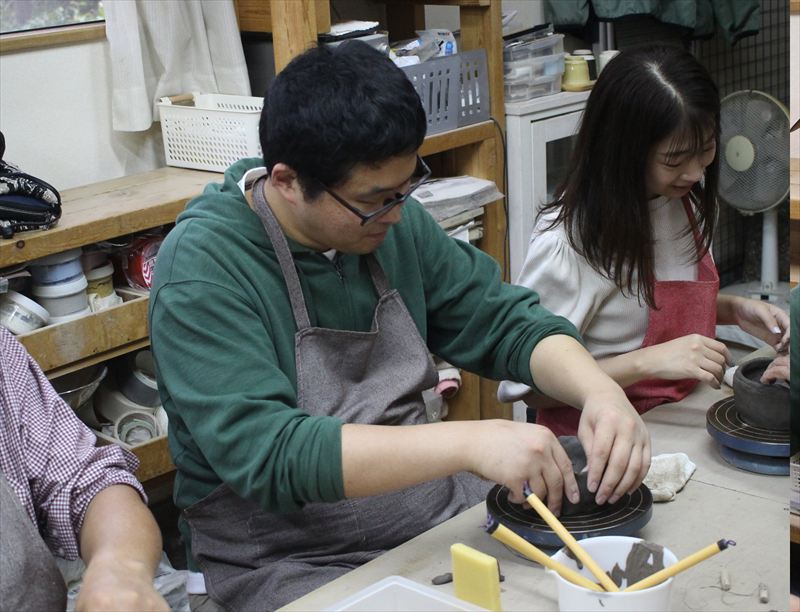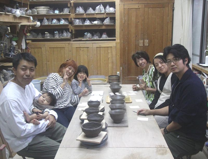 手びねりコース(卓上ロクロにて)工房内では最大14名まで出来ます。