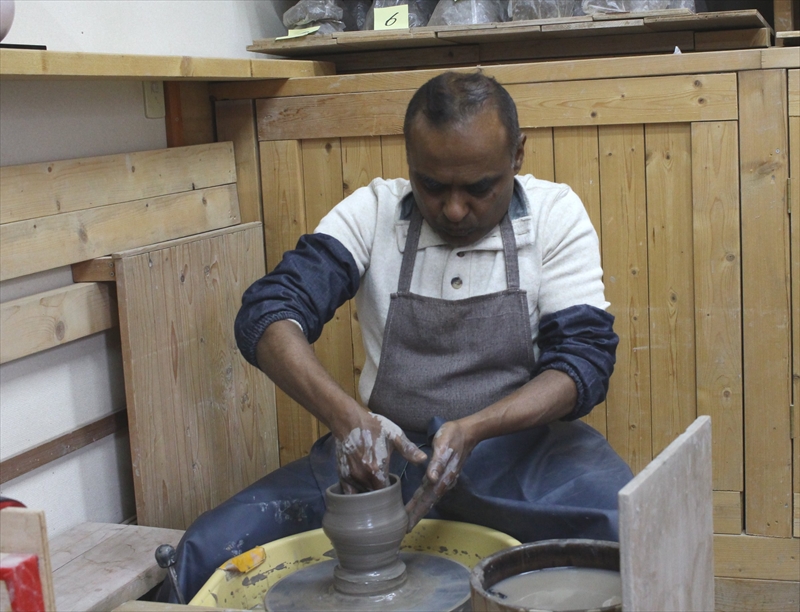 手びねりコース(卓上ロクロにて)工房内では最大14名まで出来ます。